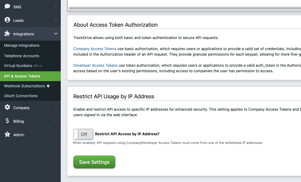 Protect your organization’s shared integrations by defining a dedicated IP whitelist for company access tokens, allowing only approved networks to connect.